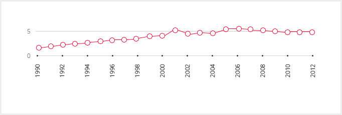 Так, первичная заболеваемость болезнями крови и кроветворных органов возросла за 1990-2013 годы в 3,6 раза, системы кровообращения — в 2,7 раза
